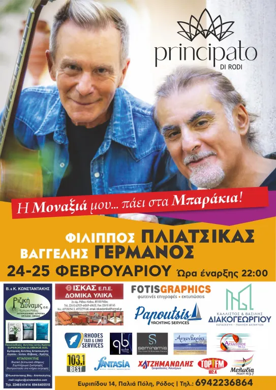 Συναυλίες Ρόδος : Ο Φίλιππος Πλιάτσικας και ο Βαγγέλης Γερμανός στο Principato di Rodi ( 24/2 -25/2 )
