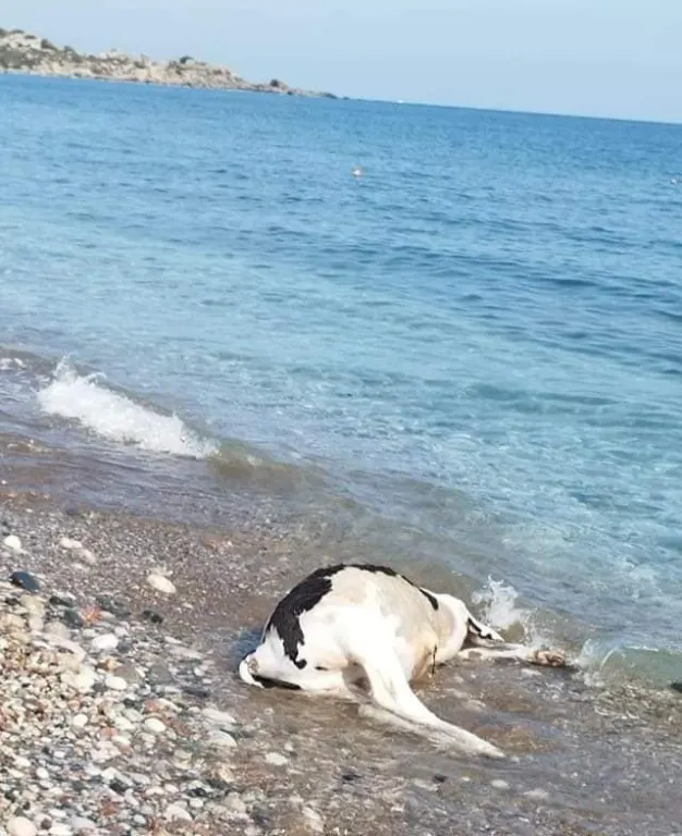 Το πτώμα μιας αγελάδας εκβράστηκε στην ακτή στην παραλία Ψαροπούλα στη Ρόδο. Ο Δήμος Ρόδου ενημερώθηκε από τους λουόμενους . Η Υπηρεσία Καθαριότητας είναι υπεύθυνη για να μαζέψει το πτώμα του μεγαλόσωμου ζώου.