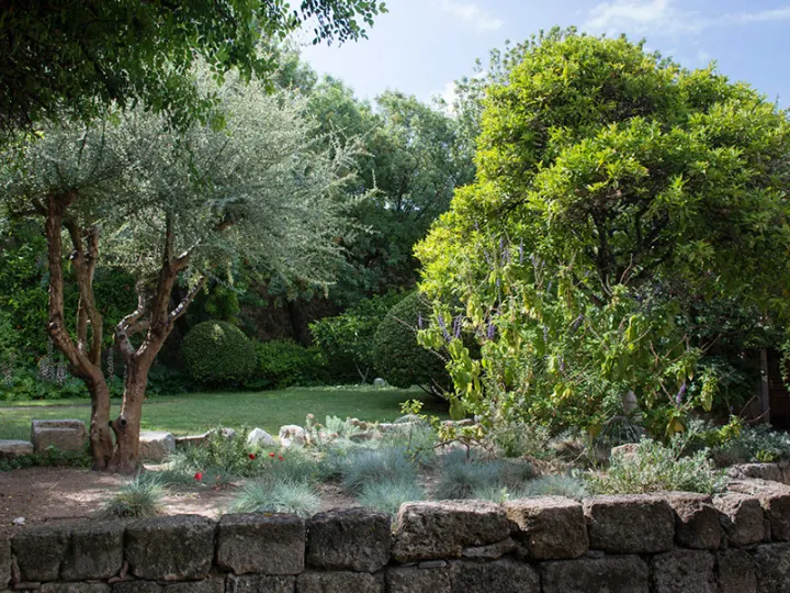 Lemon trees, mandarin trees, orange trees, medlar trees, myrtles, laurels, anemones, lavender, mint, thyme, acanthus, santolina, jasmine, artemisias, dictamom, daffodils, violas, daffodils, 13 types of roses and many other species are cultivated.