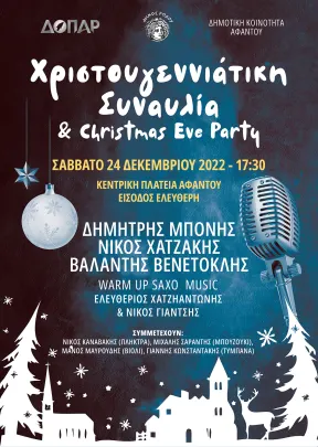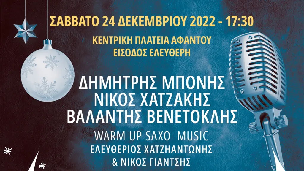 Η Δημοτική Κοινότητα Αφάντου σε συνεργασία με τον Δημοτικό Οργανισμό Πολιτισμού Αθλητισμού Ρόδου ΔΟΠΑΡ διοργανώνει στο πλαίσιο των εορταστικών εκδηλώσεων των Χριστουγέννων και της Πρωτοχρονιάς Χριστουγεννιάτικη συναυλία, το Σάββατο 24 Δεκεμβρίου 2022 στις 17:30 στην Κεντρική Πλατεία Αφάντου.
