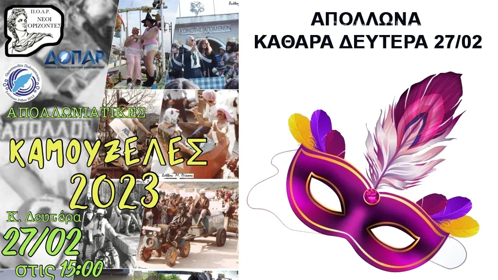 Ο Πολιτιστικός Όμιλος Απολλώνων Ρόδου «ΝΕΟΙ ΟΡΙΖΟΝΤΕΣ» σας προσκαλεί στις Απολλωνιάτικες Καμουζέλες.